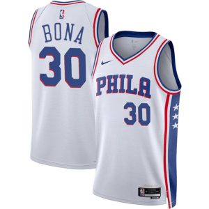 Men’s Philadelphia 76ers #30 Adam Bona White 2024 Draft Association Edition Stitched Jersey