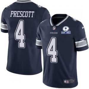Men’s Dallas Cowboys #4 Dak Prescott Navy With Established In 1960 Patch Limited Stitched Jersey