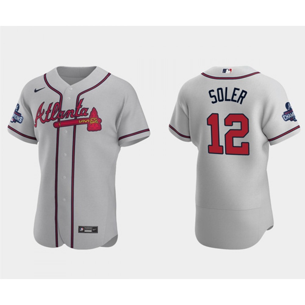 Men’s Atlanta Braves #12 Jorge Soler 2021 Grey World Series Champions Flex Base Stitched Jersey