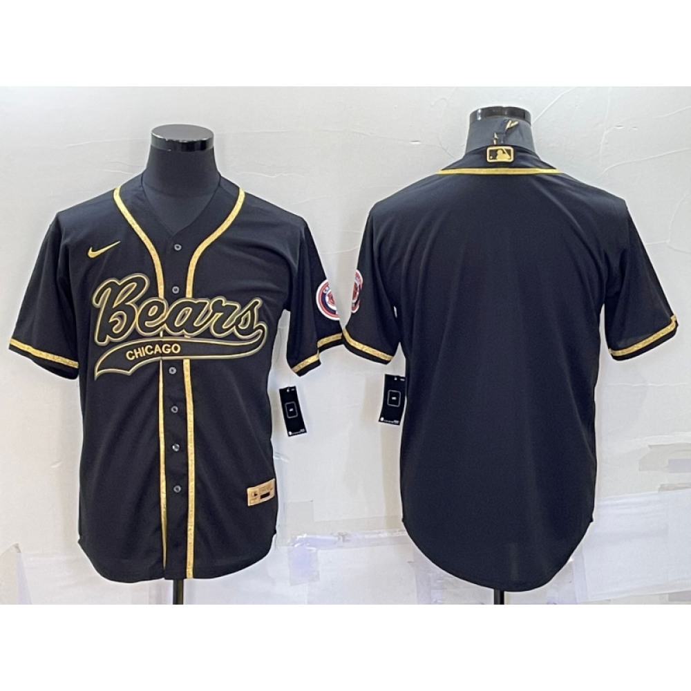 Men’s Chicago Bears Blank Black Gold With Patch Cool Base Stitched Baseball Jersey