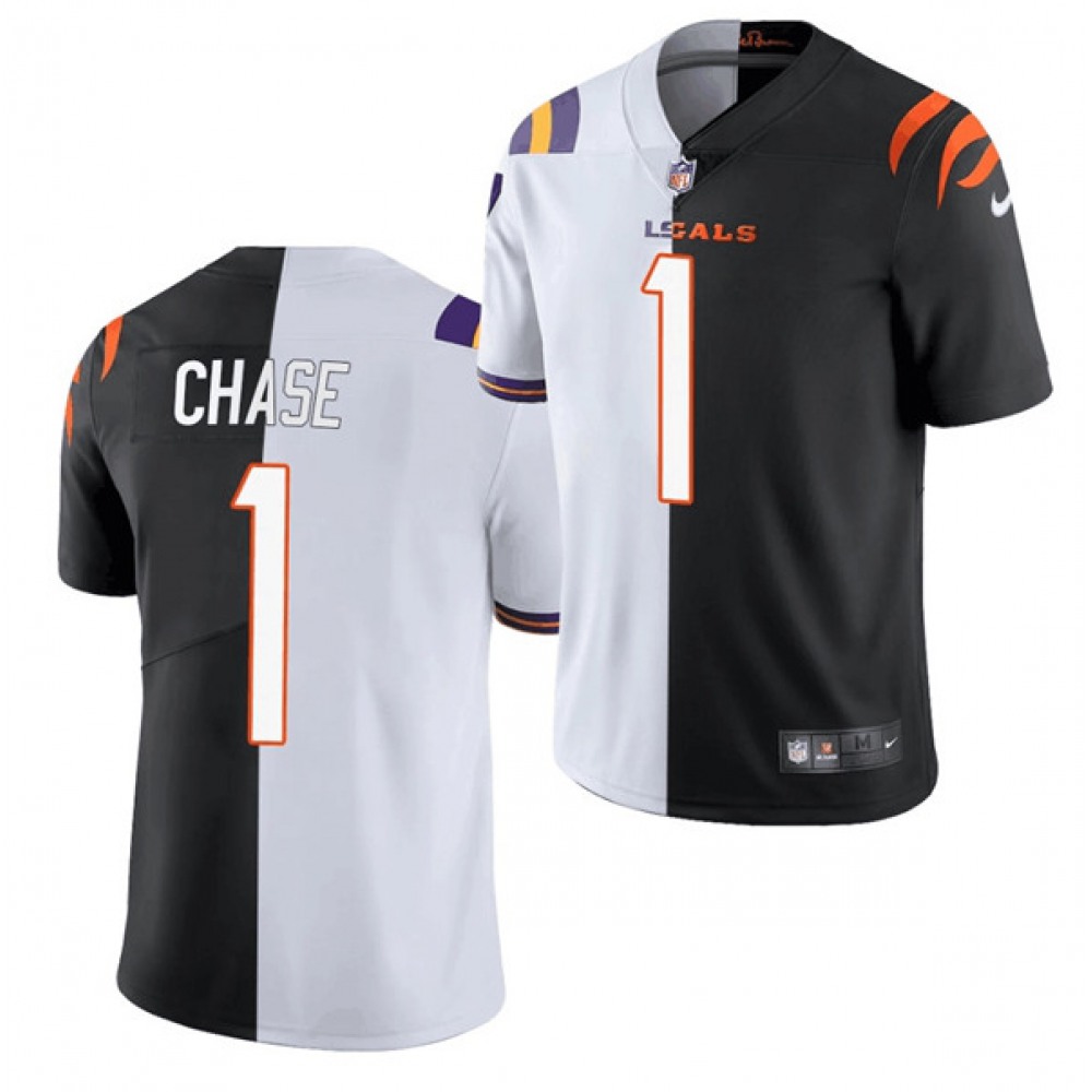 Men’s Cincinnati Bengals #1 Ja’Marr Chase 2021 Black/White Split Stitched NFL Jersey