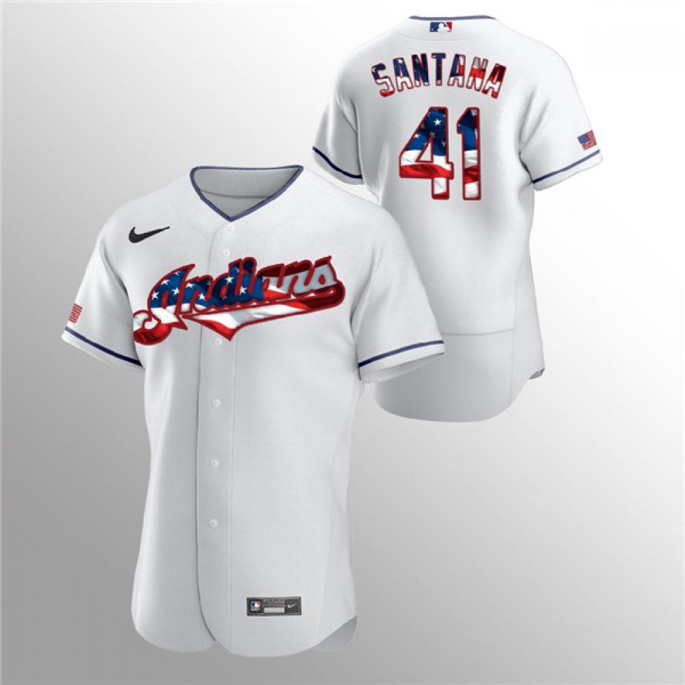Men’s Cleveland indians #41 Carlos Santana White 2020 Stars & Stripes Flex Base Stitched Jersey