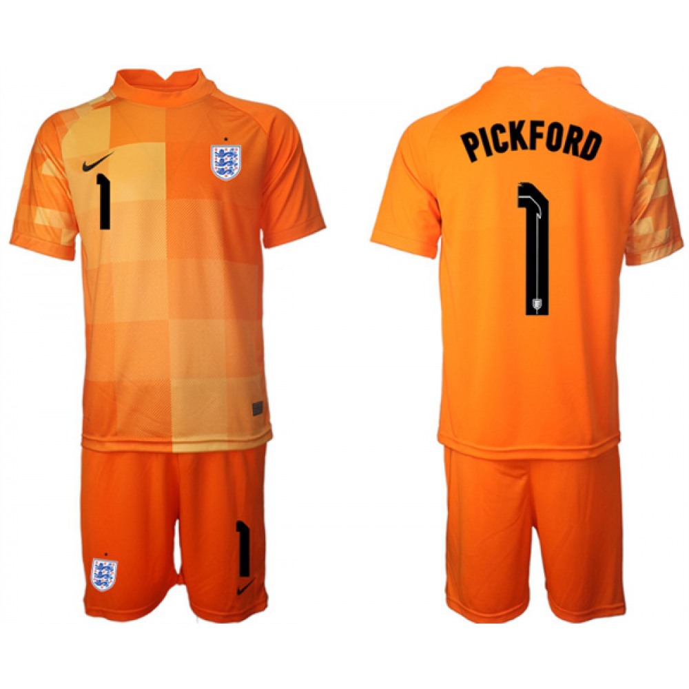 Men’s England #1 Pickford Orange Goalkeeper Soccer Jersey Suit