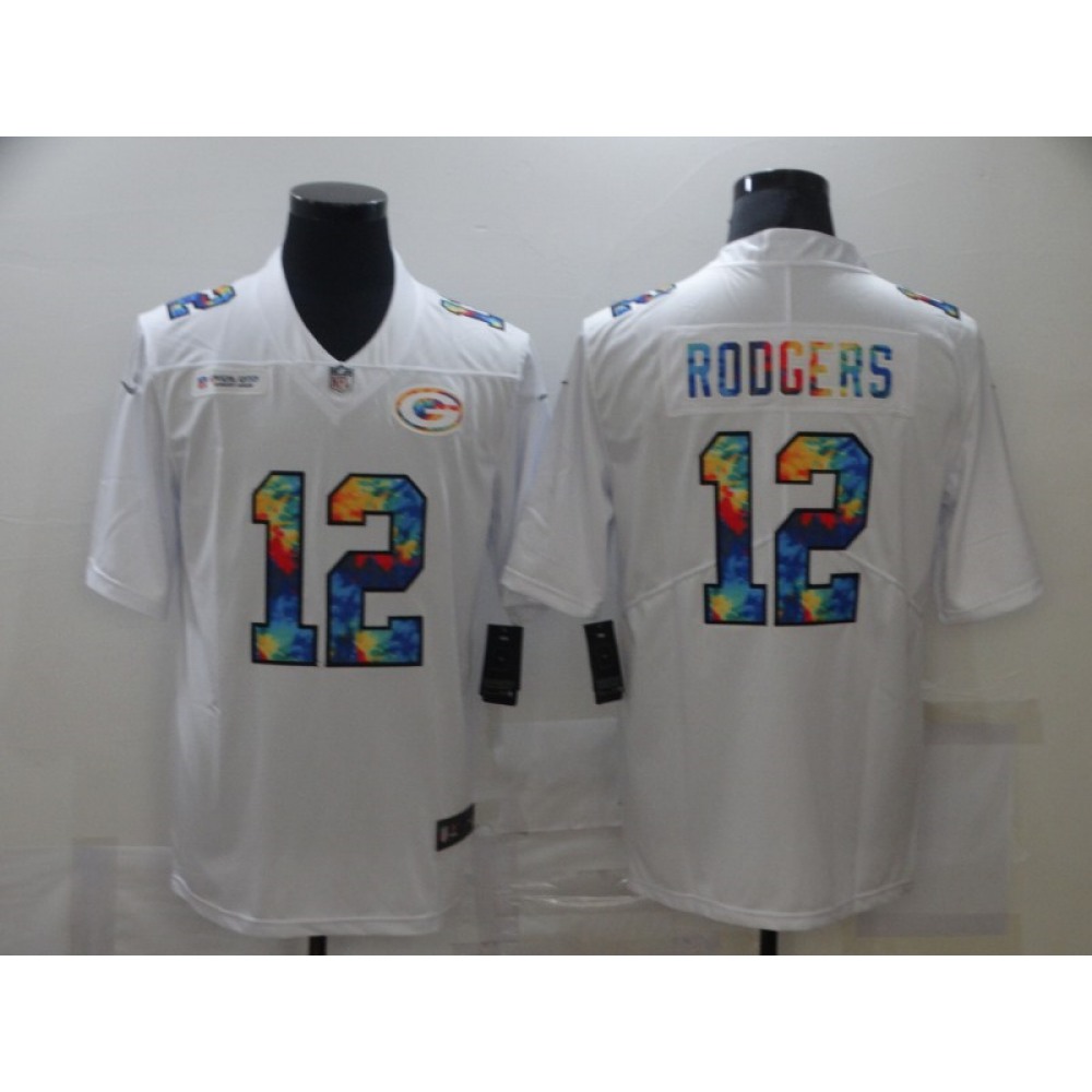 Men's Green Bay Packers #12 Aaron Rodgers 2020 White Leopard Print Fashion Limited Stitched Jersey