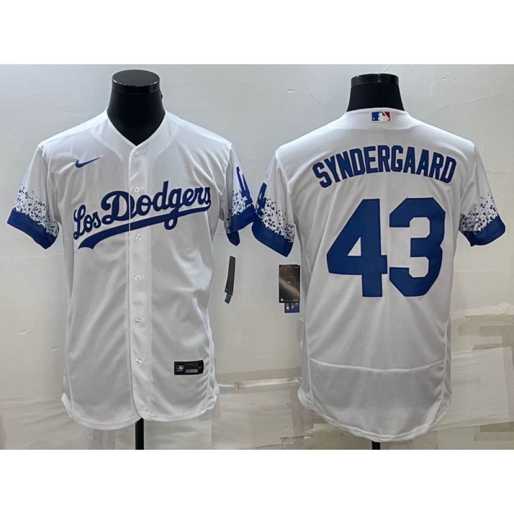 Men’s Los Angeles Dodgers #43 Noah Syndergaard White City Connect Flex Base Stitched Baseball Jersey