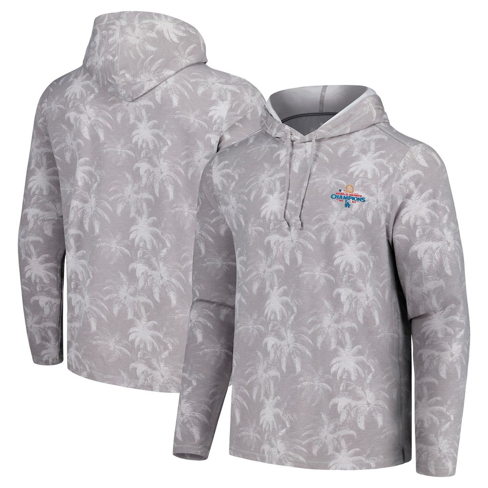 Men’s Los Angeles Dodgers Tommy Bahama Gray 2024 World Series Champions Sport Palm Frenzy Pullover Hoodie