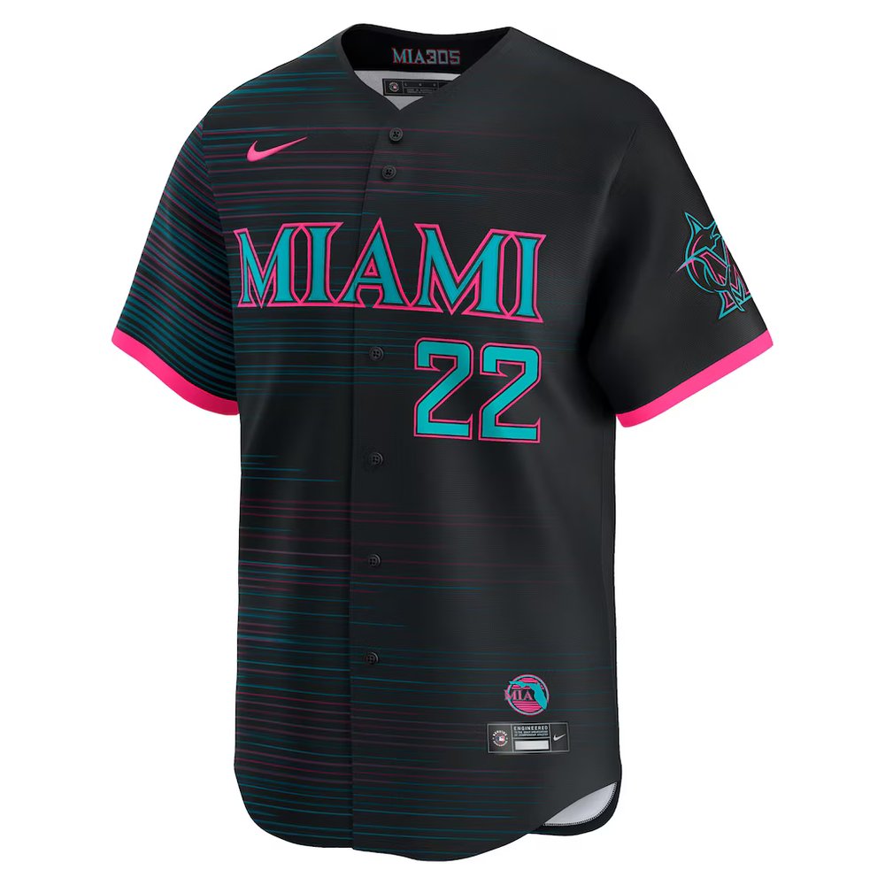 Men’s Miami Marlins #28 Kyle Stowers Nike Black 2025 City Connect Limited Jersey