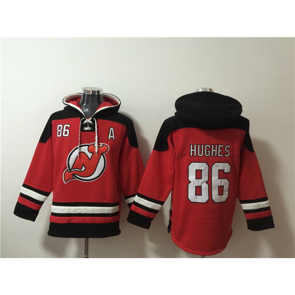 Home More NHL Jerseys New Jersey Devils Men’s New Jersey Devils #86 Jack Hughes Red Ageless Must-Have Lace-Up Pullover Hoodie