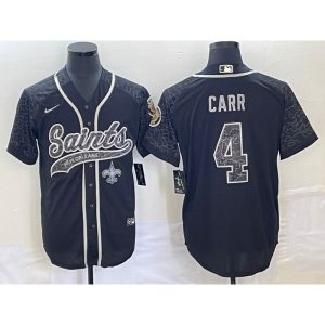 Men’s New Orleans Saints #4 Derek Carr Black Reflective With Patch Cool Base Stitched Baseball Jersey