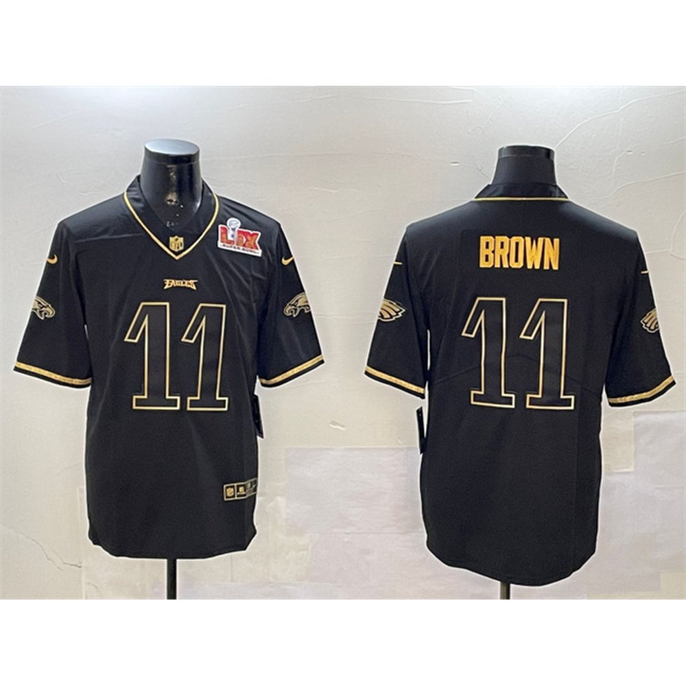 Men’s Philadelphia Eagles #1 Jalen Hurts Carbon Black Super Bowl LIX Fashion Game Player Jersey