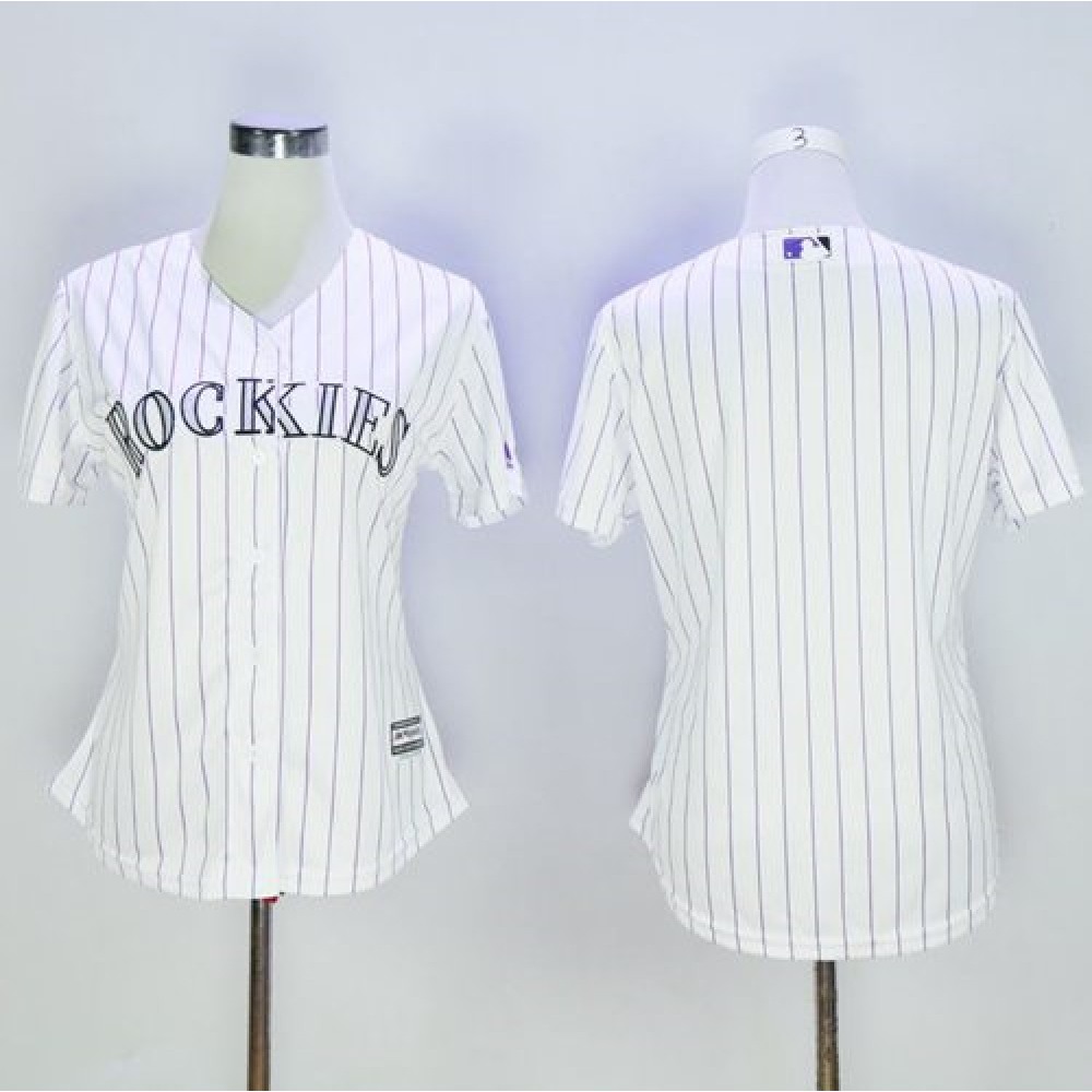 Home MLB Jerseys Colorado Rockies Rockies Blank White Strip Women’s Home Stitched MLB Jersey