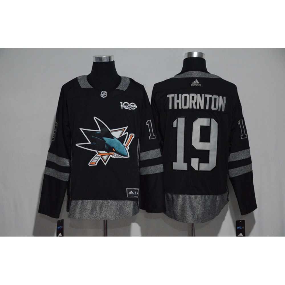 Home More NHL Jerseys San Jose Sharks San Jose Sharks #19 Joe Thornton Black Men’s 1917-2017 100th Anniversary Stitched NHL Jersey