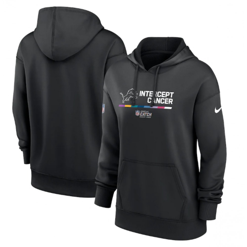 Women's Detroit Lions Black 2023 Crucial Catch Club Pullover Hoodie(Run Small) $41.00