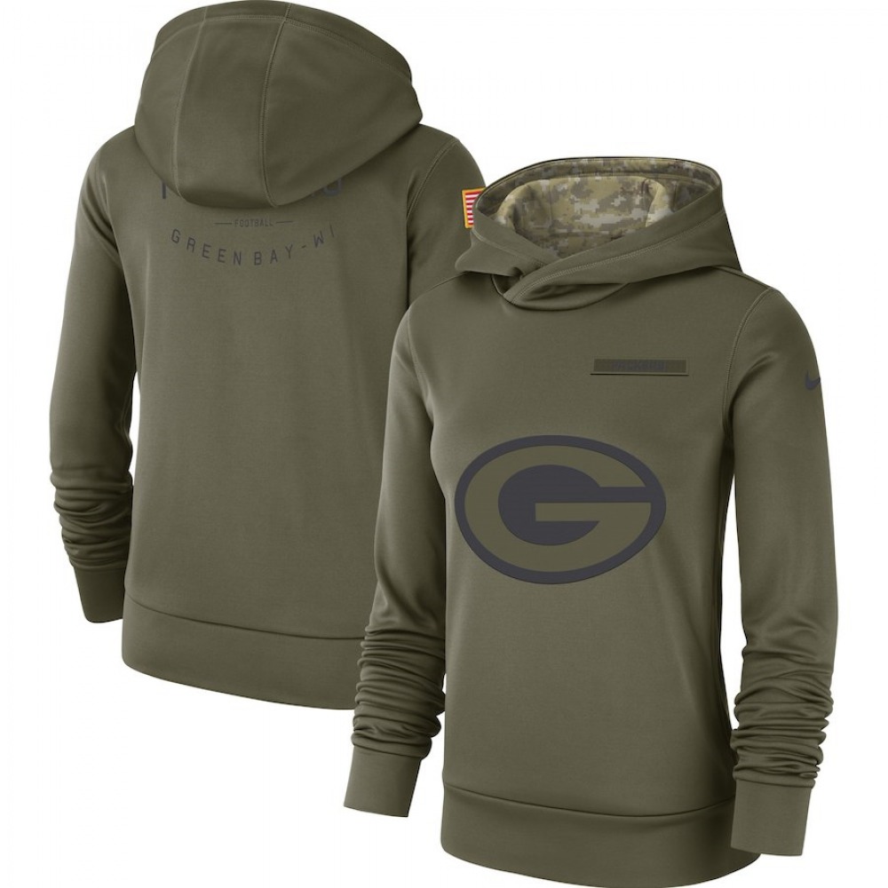 Women’s Green Bay Packers Olive Salute to Service Team Logo Performance Pullover NFL Hoodie