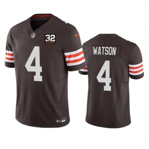 Men’s Cleveland Browns #4 Deshaun Watson Brown 2023 F.U.S.E. With Jim Brown Memorial Patch Vapor Untouchable Limited Stitched Jersey