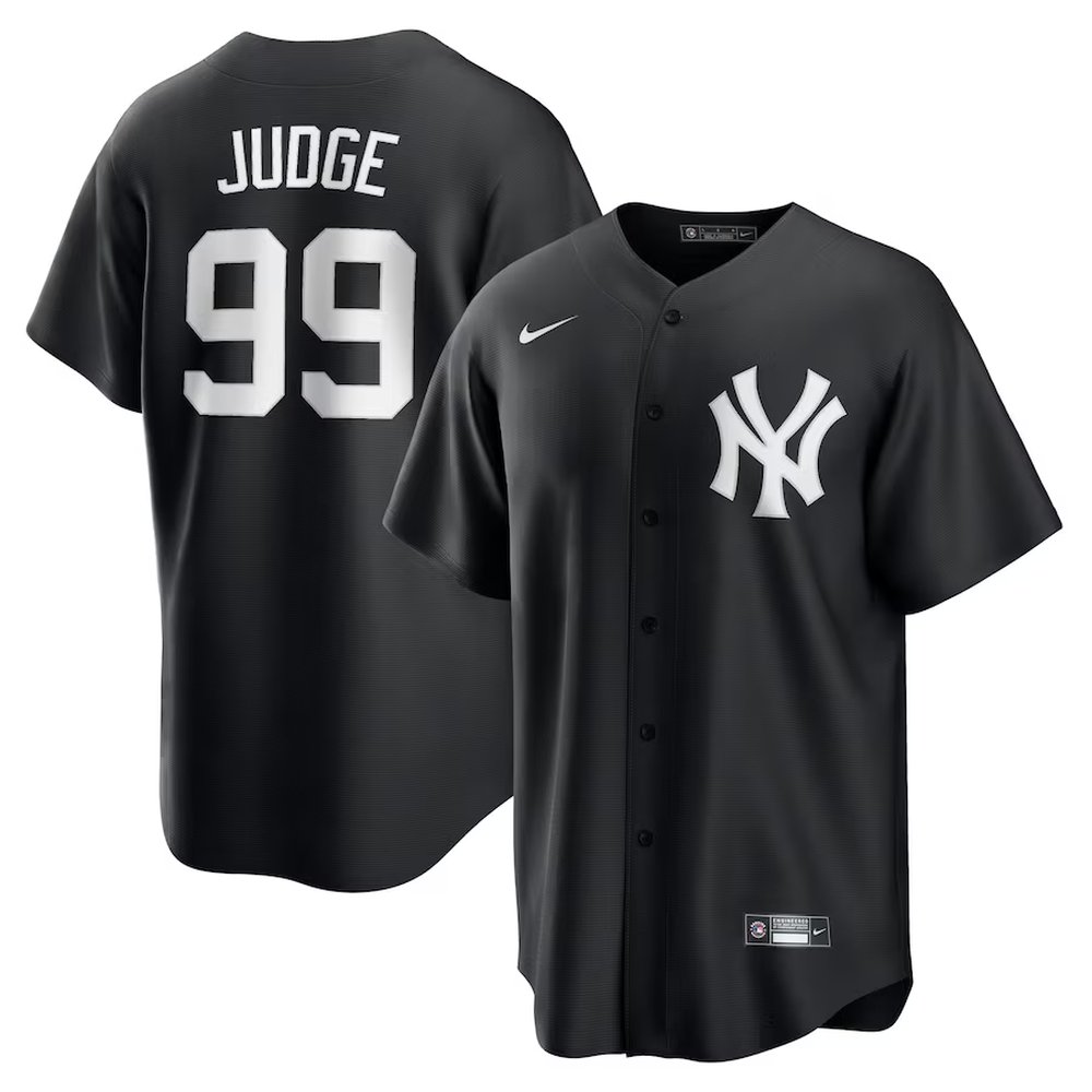 Men’s New York Yankees #99 Aaron Judge Nike Black Lights Out Replica Player Jersey