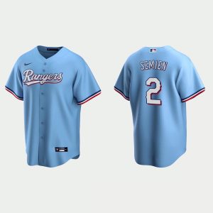 Men’s Texas Rangers #2 Marcus Semien Light Blue Cool Base Stitched Baseball Jersey